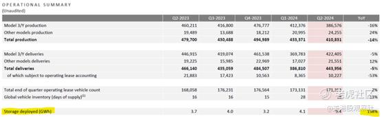 这些需求将来自哪里?汽车和电动工具的锂需求现在正在增长。飞机、火车和船只可能稍后出现。固定电力存储是锂需求的另一个来源,如果我们查看特斯拉2024年7月的销售数字,这个领域增长相当快。我们还可以看到特斯拉7月财务报告中的能源存储增长: