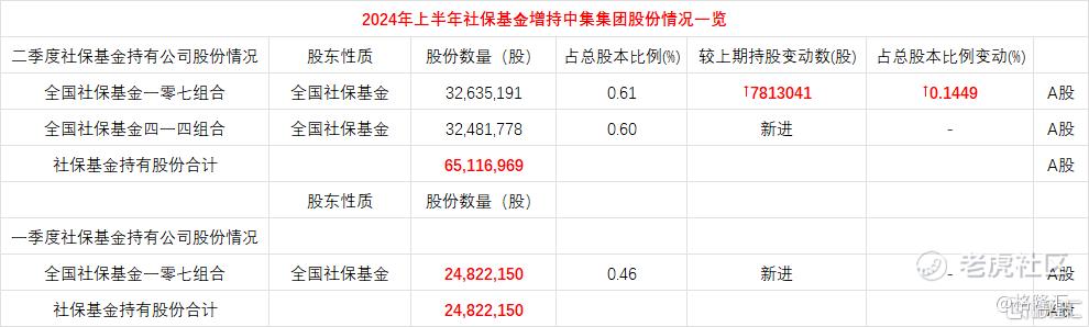 在2024年第二季度,社保基金在A股市场的动作尤为引人注目。其中,社保基金增持数量大于1000万股的上市公司共有60家,而增持数量超过4000万股的更是达到了9家。在这份名单中,全球集装箱龙头中集集团(000039.SZ)赫然在目,其不仅被增持超过4000万股,更是25家社保基金持股数量比上季度翻倍的上市公司之一。