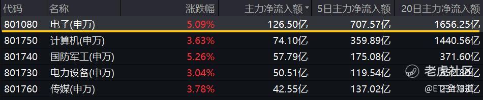 资金面上,主力资金大举涌入电子板块!截至发稿,电子板块获主力资金净流入