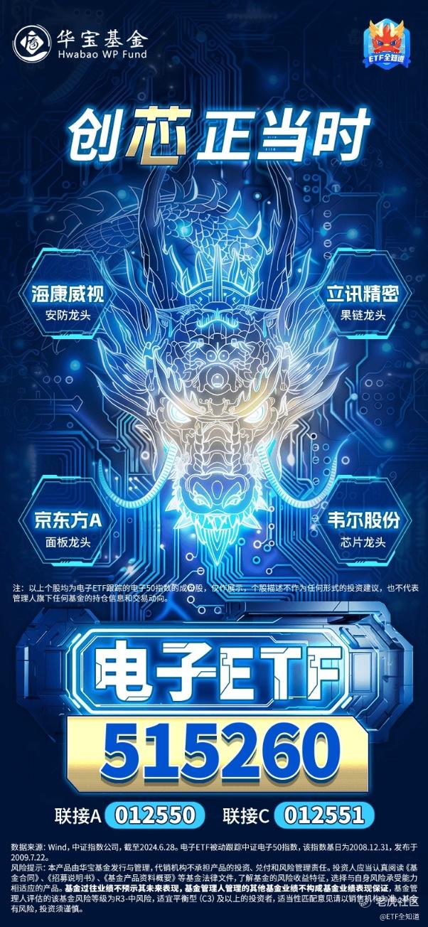 风险提示:电子ETF(515260)被动跟踪中证电子50指数,该指数基日为2008.12.31,发布于2009.7.22,指数成份股构成根据该指数编制规则适时调整。文中指数成份股仅作展示,个股描述不作为任何形式的投资建议,也不代表管理人旗下任何基金的持仓信息和交易动向。基金管理人评估的该基金风险等级为R3-中风险,适宜平衡型(C3)及以上的投资者,适当性匹配意见请以销售机构为准。任何在本文出现的信息(包括但不限于个股、评论、预测、图表、指标、理论、任何形式的表述等)均只作为参考,投资人须对任何自主决定的投资行为负责。另,本文中的任何观点、分析及预测不构成对阅读者任何形式的投资建议,亦不对因使用本文内容所引发的直接或间接损失负任何责任。基金投资有风险,基金的过往业绩并不代表其未来表现,基金管理人管理的其他基金的业绩并不构成基金业绩表现的保证,基金投资须谨慎。