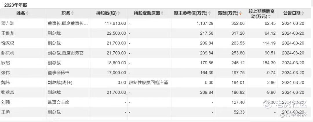 据财报显示,舍得酒业2020-2023年董事长薪酬分别为179.34万元、276.96万元、294.35万元、352.06万元,四年间薪水翻倍,刚刚离职的副总裁王维龙薪酬同样高达317万元。横向对比来看,2023年舍得酒业薪酬前三名高管累计达到932.81万元,位列白酒行业第二。