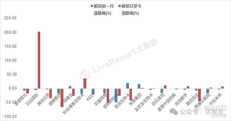 据LiveReport大数据统计,自6月份以来,港股市场已有18只个股发生股份解禁事件,按解禁日收盘价计,这些个股的合计解禁市值达197亿港元。