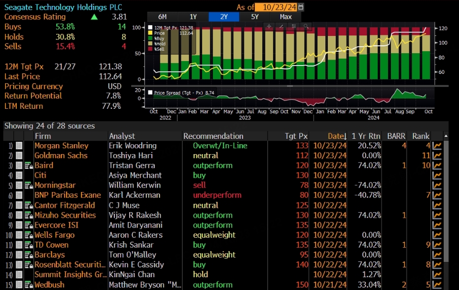 总的来说,希捷FY25Q1全面超出预期,并且指引乐观,盘后股价下跌原因或与此前股价涨幅较大,市场预期充分,不排除有资金在历史高点附近获利了结。