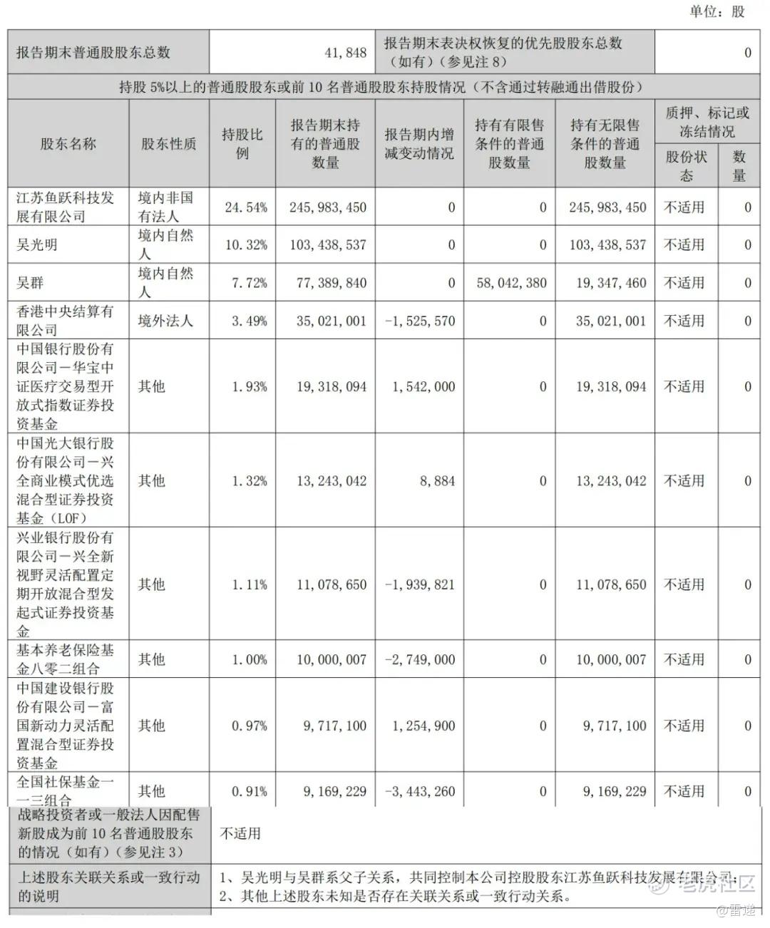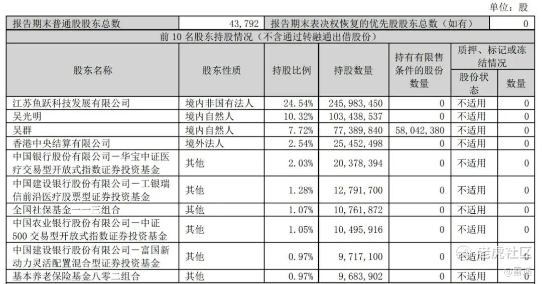 截至2024年6月30日,江苏鱼跃科技发展有限公司持股为24.54%,吴光明持股为10.32%,吴群持股为7.72%;