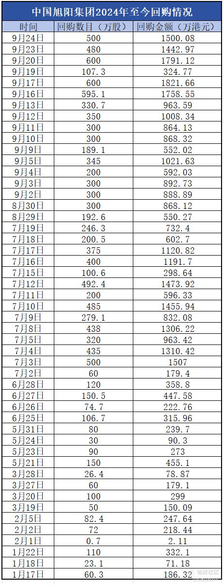 此后的8月至9月,旭阳集团延续了高频回购股份的节奏,截至10月24日,旭阳集团年初至今累计回购了11908.5万股,合计耗资超过3.5亿港元。