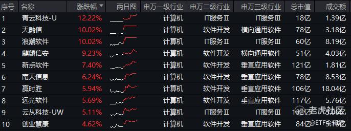 近日,成长风格热度飙升,科技类ETF或成为投资者的“心头好”,今日(10月28日)信创板块延续上周五的活跃态势,天融信、浪潮软件涨停,青云科技-U涨超12%,麒麟信安涨逾9%,新点软件涨超7%,南天信息、赢时胜、远光软件等个股大幅跟涨。