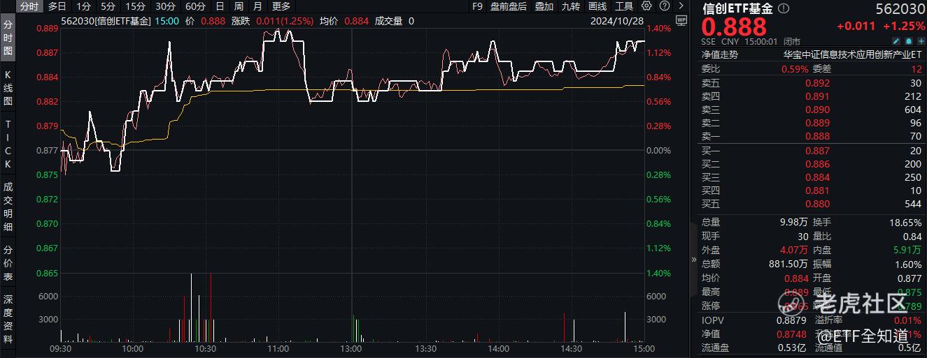 热门ETF方面,汇聚信创产业链核心龙头的信创ETF基金(562030)早盘震荡走高,场内价格最高上探1.37%,午后保持活跃,最终收涨1.25%,成功斩获日线2连阳!