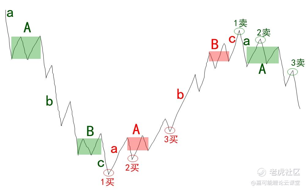 缠论三类买卖点的位置都是固定的,如下图所示: