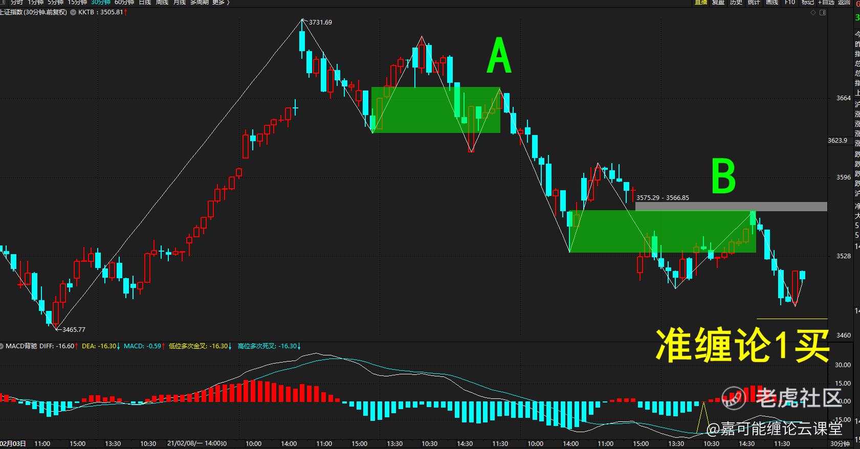 同样,当下上证指数在30分钟出现了一个缠论趋势背驰,即缠论1买,如下图所示: