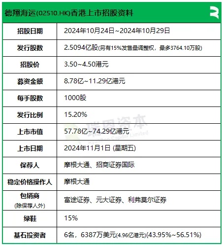 德翔海运(02510)以4.18港元定价,将于11月1日香港上市 | 香港IPO市场