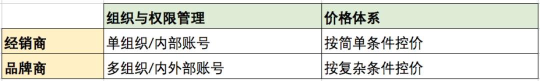 比如,在快消品行业,经销商和生产商的管理模式差异是比较大的。对于经销商来说,组织和权限的管理是相对简单的,也不涉及严格的外部账号管理;而品牌商则有复杂的多组织管理的需求,包括外部组织和账号的管理。