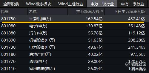 资金面上,信创ETF基金(562030)标的指数的第一大重仓行业——计算机板块全天获主力资金净流入162.54亿元,近5日获主力资金加仓457.41亿元,均高居31个申万一级行业首位!