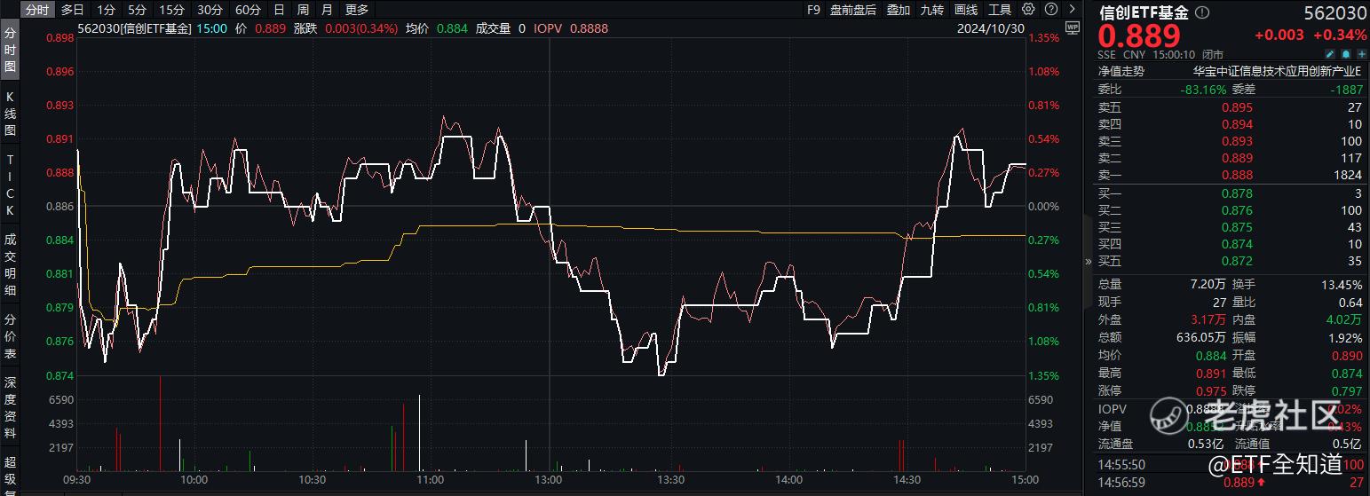 热门ETF方面,被动跟踪中证信创指数的信创ETF基金(562030)全天在水面附近震荡,最终场内价格顽强收涨0.34%。