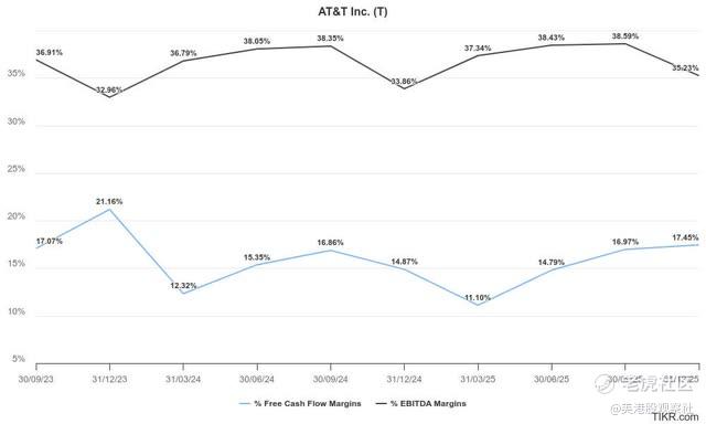 因此,随着美联储可能进一步降低利率,市场可能对其2025年的盈利清晰度更有信心。在一个合理的促销环境中,更强劲的iPhone驱动的升级周期可能会为公司的预估带来愉快的上行惊喜。此外,美国电话电报吸引人的5.1%的前向股息收益率得到了其坚实的FCF盈利能力的充分覆盖。