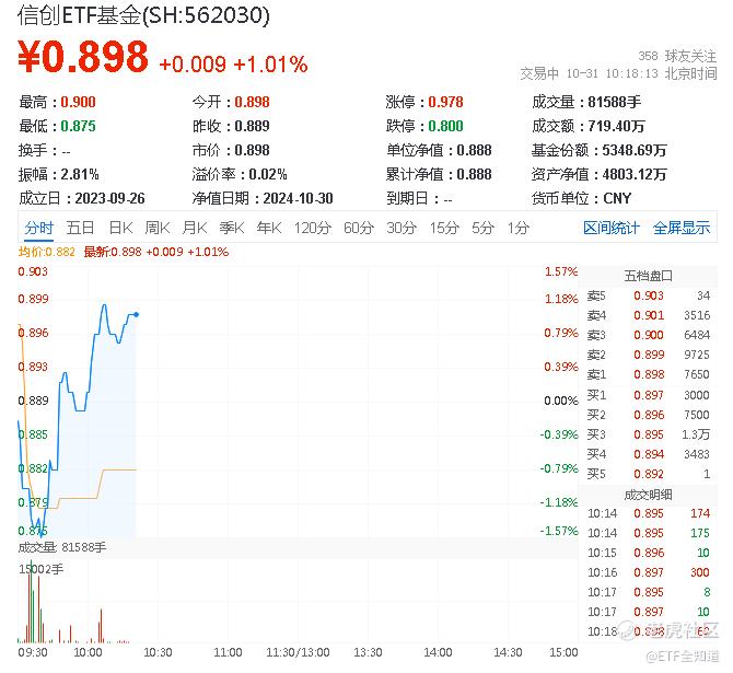 信创ETF基金盘中涨超1%,赢时胜20CM涨停