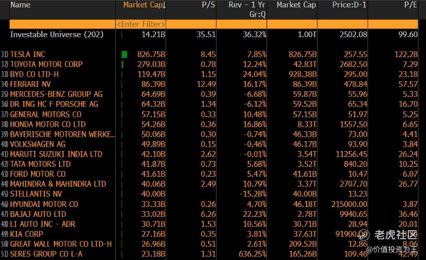 目前,理想的市销率估值为1.5倍,传统燃油车企在10%的增速下,如丰田,对应的市销率在0.8倍,新能源龙头比亚迪的增速高于理想,目前的市销率为1.2倍: