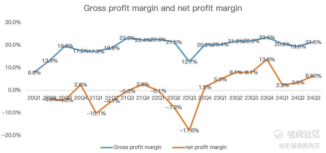 毛利率方面,三季度为21.5%,大超分析师预期的20.07%: