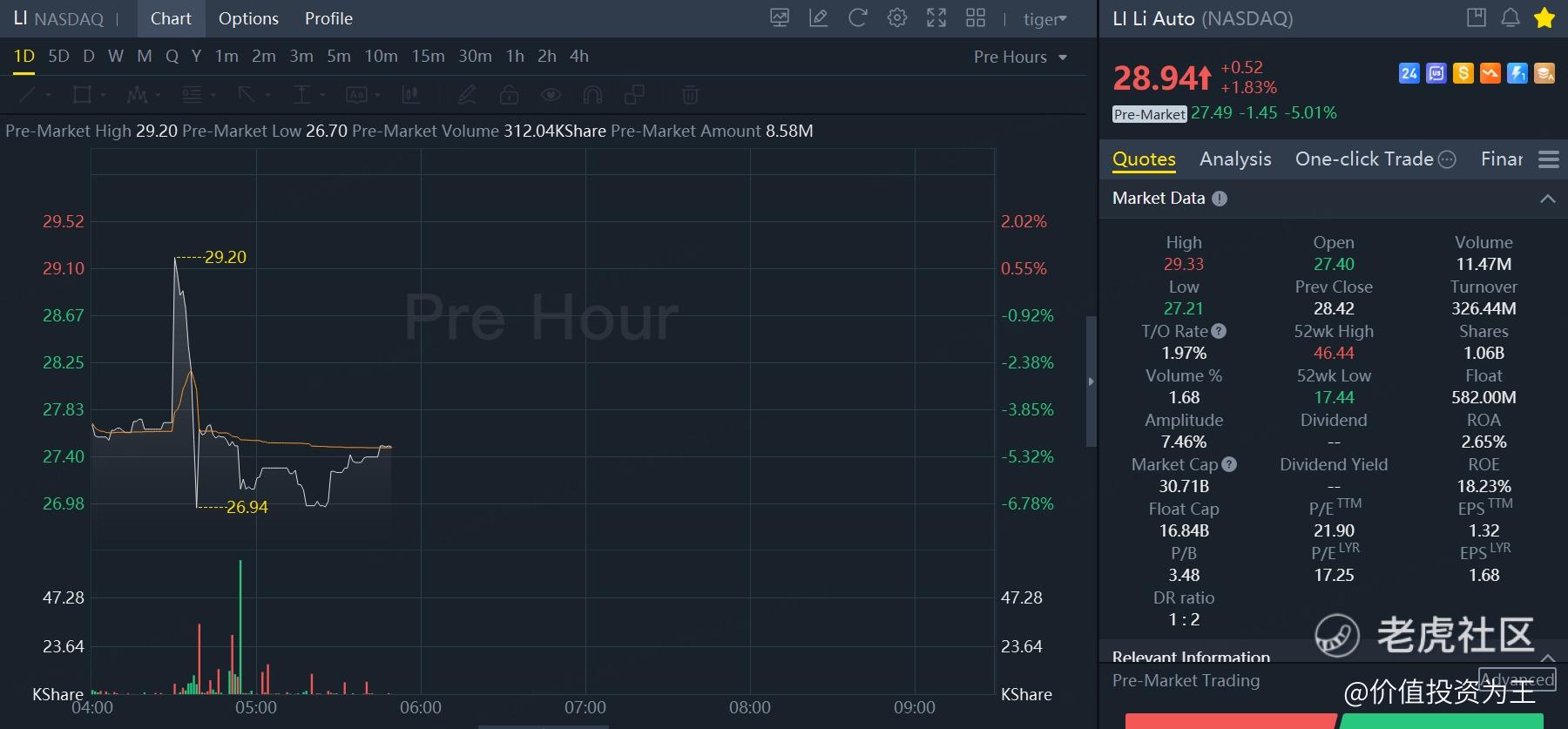 但四季度营收指引不及预期,盘前股价一度大跌近7%: $理想汽车(LI)$