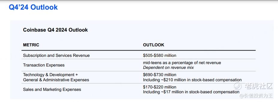 从coinbase给出的四季度指引来看,订阅及服务收入在5.05-5.85之间,保持了相对稳定,甚至可能增长: