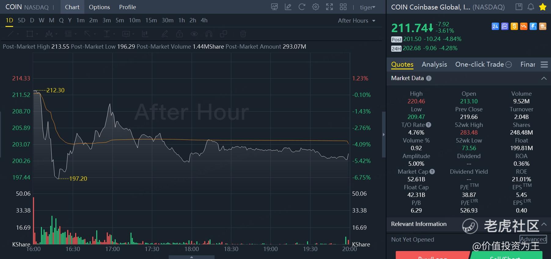 昨日,加密货币交易所coinbase公布了三季报,业绩低于预期,盘后股价下跌4.84%: $Coinbase Global, Inc.(COIN)$