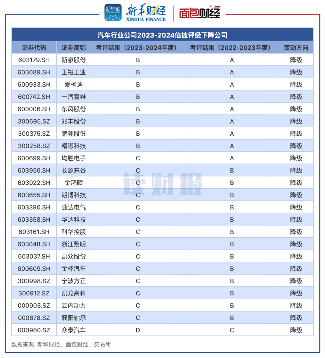 2023-2024年度的考评结果中,有23家汽车行业公司的信披考评被交易所降级。