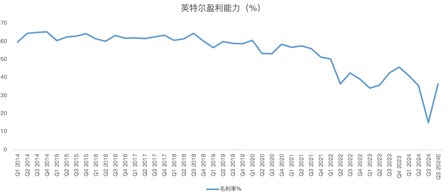 毛利率预计在36.5%,明显高于三季度的15%,凸显三季度重组及减值费用带来的影响,但远低于英特尔曾经60%的水平: