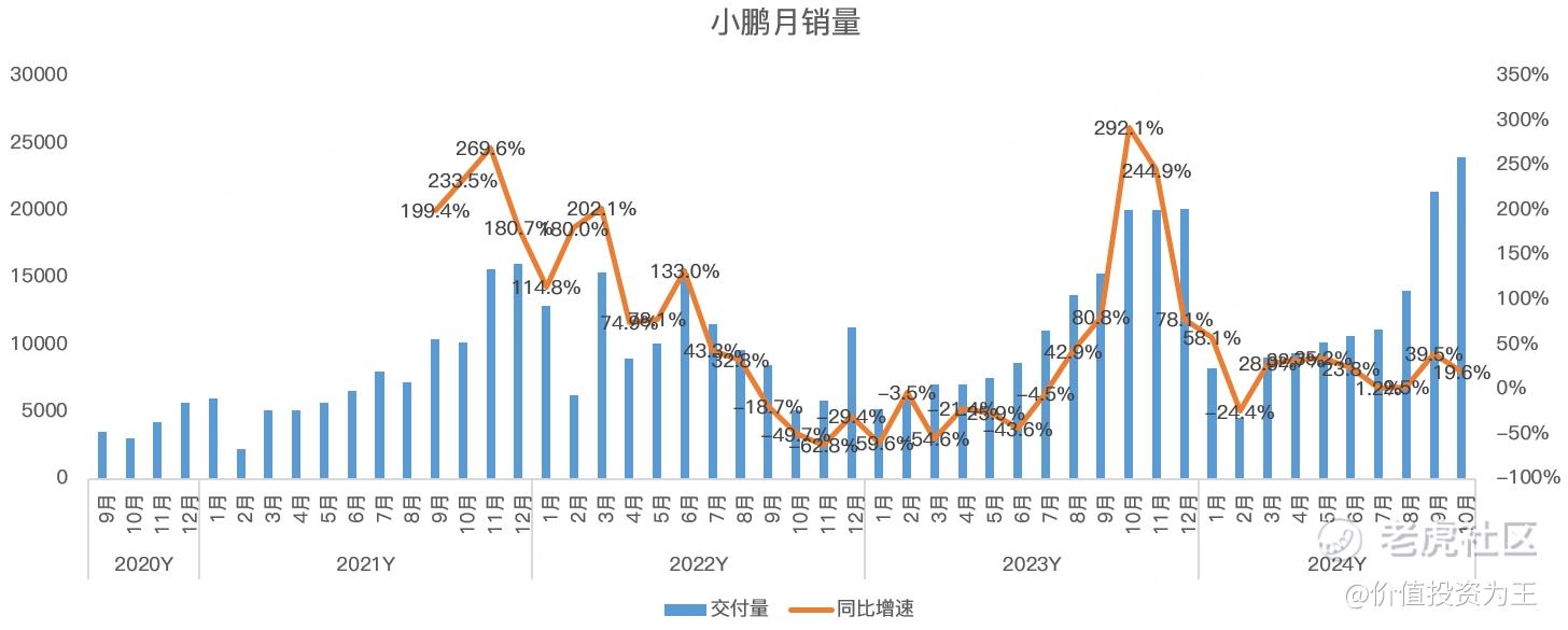 按理说,MONA M03爆单了,但从销量上看,小鹏10月交付23917辆,同比增长19.6%,环比9月增加2565辆: