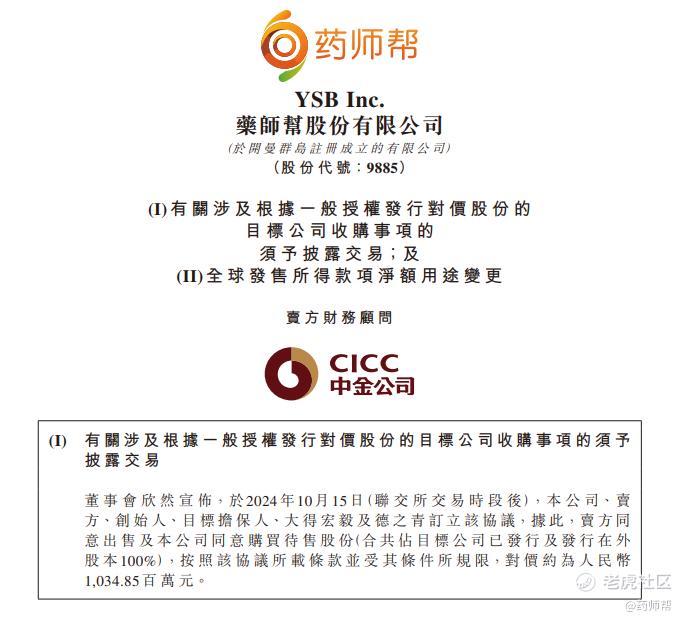 10月15日,药师帮公告就全资收购医药供应链及运营服务平台“一块医药”签署交易协议。本次收购将推动双方在市场、供应链、产品等资源的优势互补,形成1+1>2的协同合力,进一步拓展药师帮自有品牌产品广度,深化自有品牌业务发展,持续增强盈利能力。此次收购,也是药师帮深化产业布局、提升行业竞争韧性的重要举措,相信将加速下游客户渗透,持续提升药师帮在院外医药市场的影响力,打造多方共赢的良好生态圈。