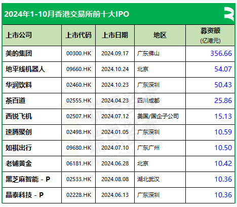 2024年前十个月香港前十大IPO