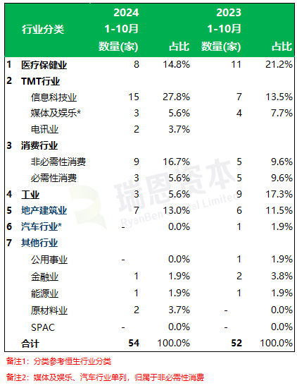 8家来自医疗保健业、占比14.8%(去年同期家11家、占比21.2%);