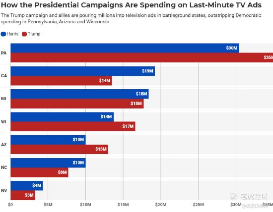 有趣的是,广告战的火力还特别集中在几个关键摇摆州,比如宾夕法尼亚、威斯康星和亚利桑那。最近几周,特朗普阵营在这些州的广告支出突然猛增,宾夕法尼亚州的亲特朗普广告投入甚至超过了3500万美元,而哈里斯阵营的投入仅为3000万。这种竞选策略的背后其实透露出一些重要信息——这些关键州未来很可能会受到更多的证策支持。这意味着,基础设施公司和当地产业链企业可能会成为这些证策“红包”的直接受益者。