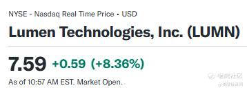 人工智能技术公司 $Lumen Technologies(LUMN)$ 今日大涨8%