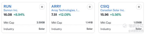 今天,整个太阳能板块表现强劲原因是市场看好哈里斯胜出, $第一太阳能(FSLR)$ 在周一早盘上涨了6%。与此同时,其他公司如 $Sunrun Inc.(RUN)$ 和 $Array Technologies Inc.(ARRY)$ 在周一早盘的股价也分别上涨了约10%。