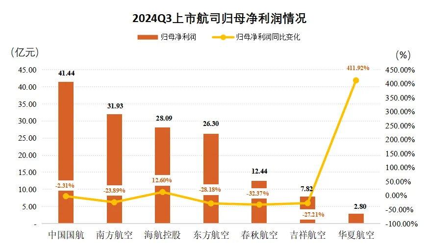 整体来看,前三季度,航司盈利能力明显提升,国有三大航中,南方航空领跑,归母净利润达19.65亿元;中国国航(601111.SH)归母净利润达13.6亿元,同比增长7成。