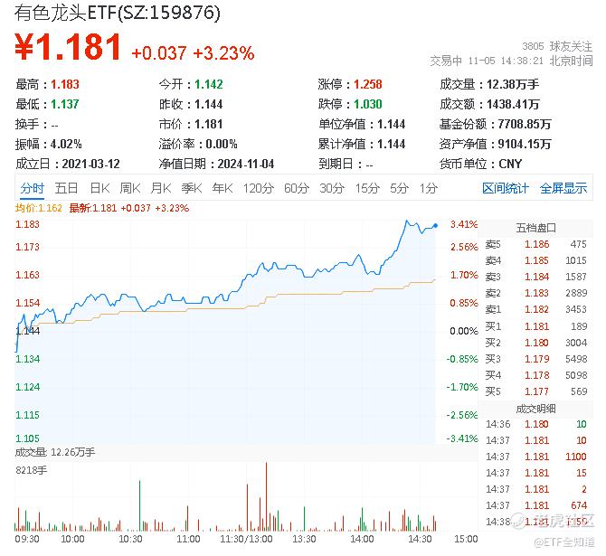 稀土继续活跃,有色龙头ETF盘中上探3.41%