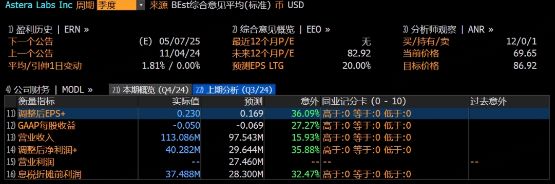昨日,AI独角兽Astera Labs公布了三季报,业绩大超预期,盘后股价暴涨25%: $Astera Labs, Inc.(ALAB)$