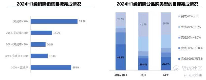 汽车之家日前发布的《2024年增换购用户趋势洞察》显示,2024上半年完成销售目标的经销商只有28.8%,而销售完成率不足70%的经销商占比高达三分之一。