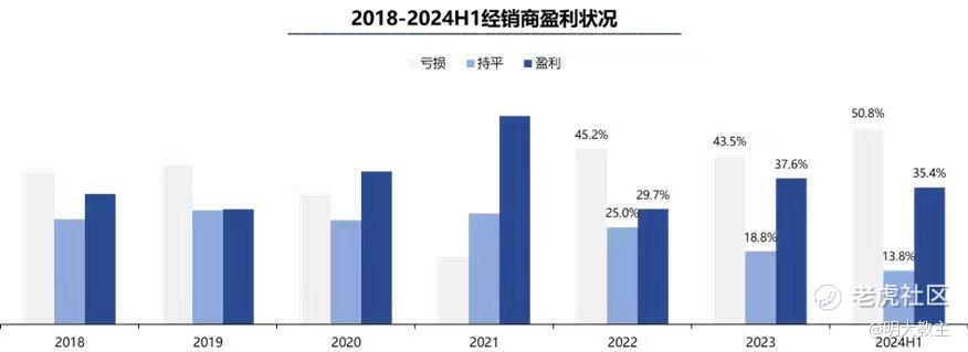 上半年,国内经销商亏损的比例高达50.8%,也是近7年经销商亏损比例最高的一年。