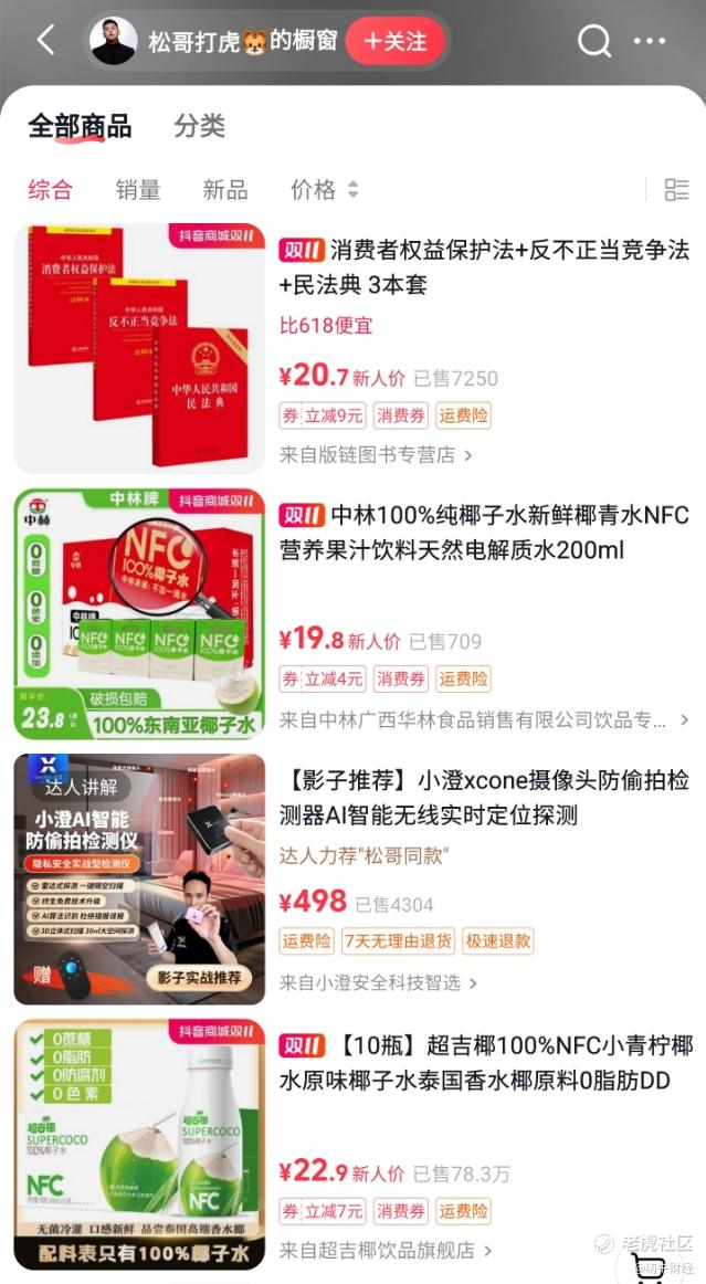 笔者发现,在“松哥打虎”的直播间,已经有了部分货品的售卖。
