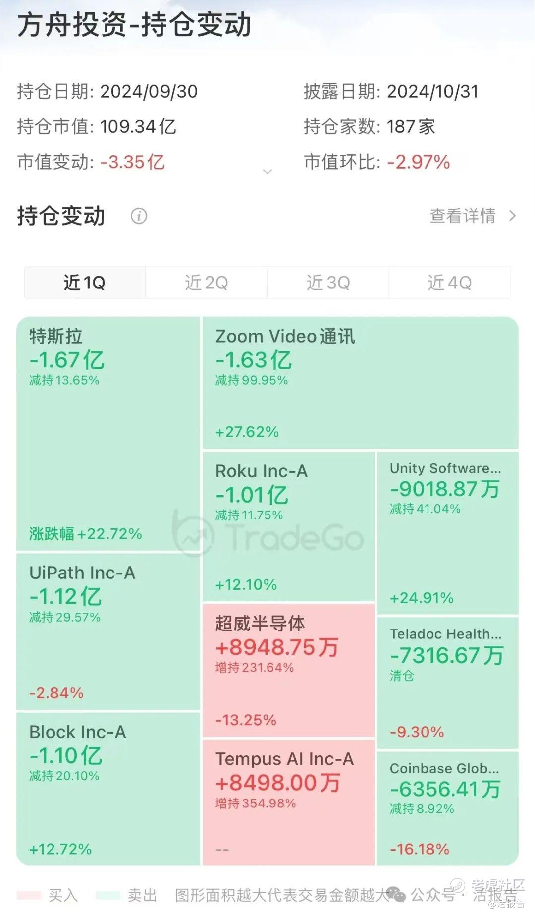 此外,有柏基、软银等支持的AI精准医疗新股Tempus AI上市后被木头姐看中,三季度也被其大幅增持过亿美元。