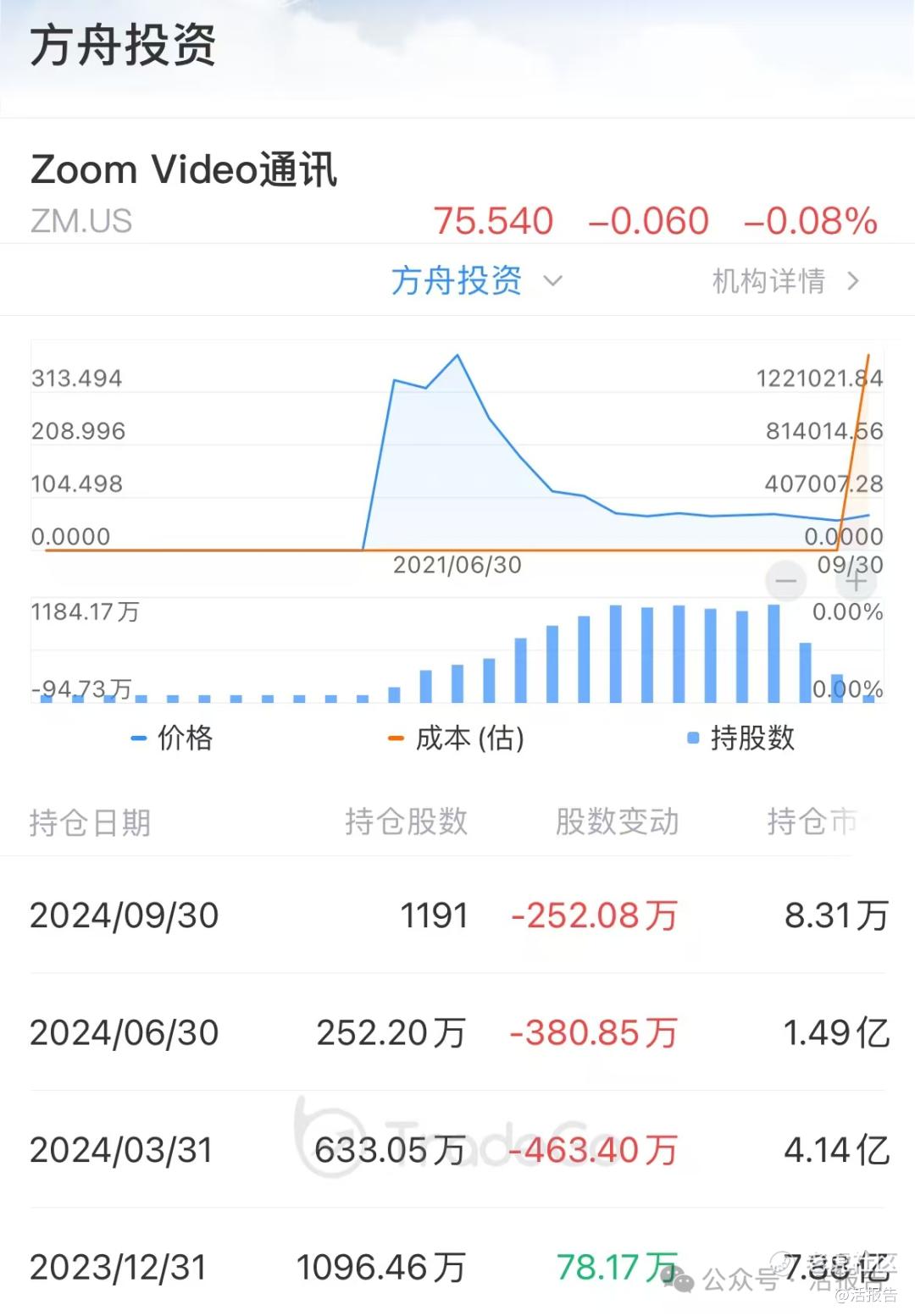 当然,看错押错的时候也有不少。过去一段时间,ARK及时止损了一些浮亏严重的个股。其中,曾重仓持有的视频会议平台Zoom在三季度被卖出1.63亿美元,基本已清仓出局。