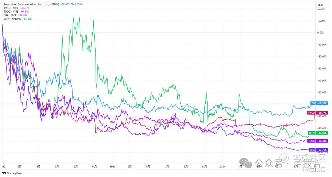同样的命运也在Twilio、Teladoc、Ginkgo Bioworks、Verve Therapeutics等身上出现。这些个股都曾被ARK大量买入,但自2022年以来股价不断阴跌,有的腰斩,有些甚至跌去了98%,ARK不得不选择认输出局。