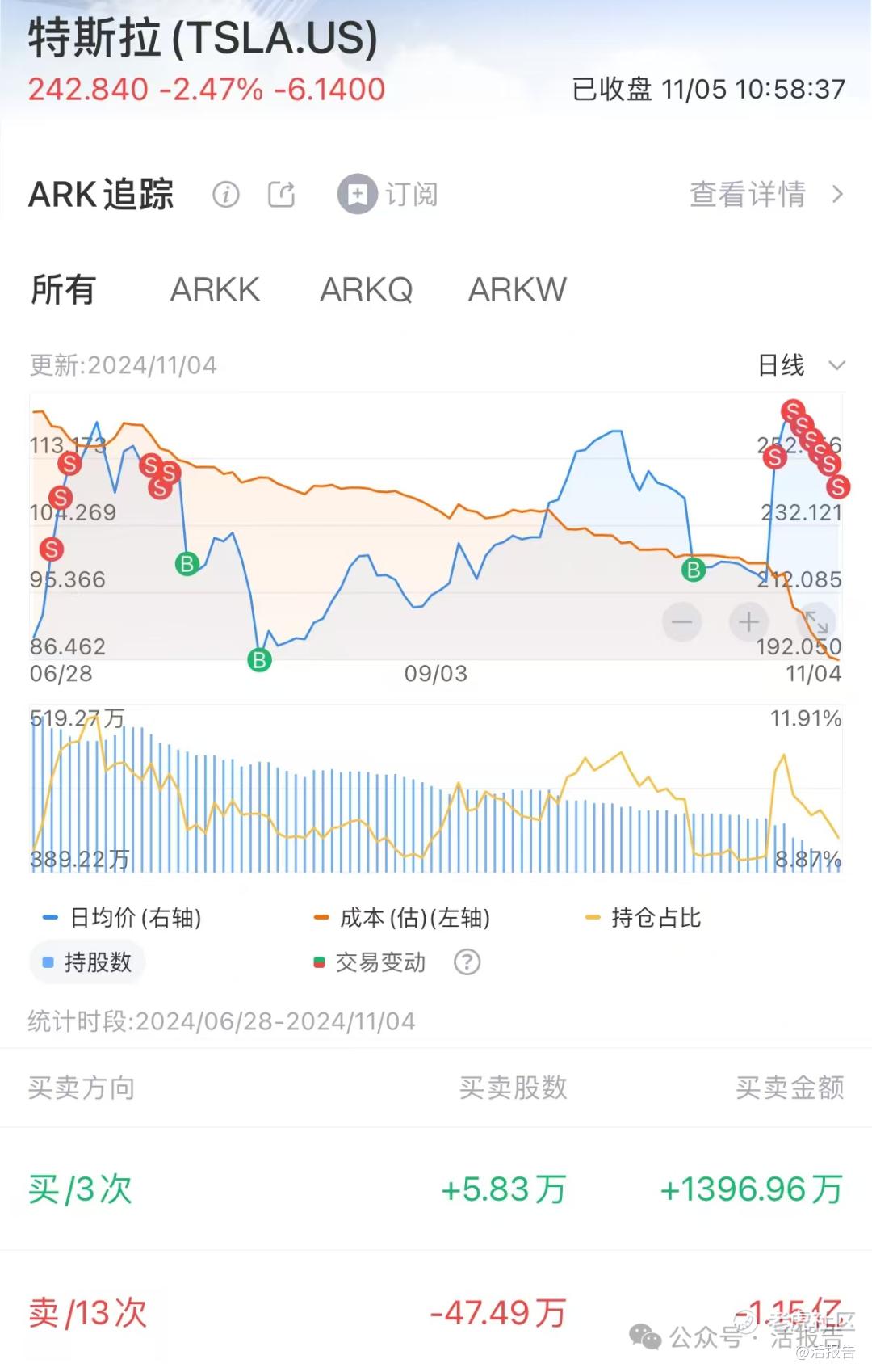 木头姐「ARK」2024Q3持仓:特斯拉高抛低吸,买进科技巨头,押中AI大牛股