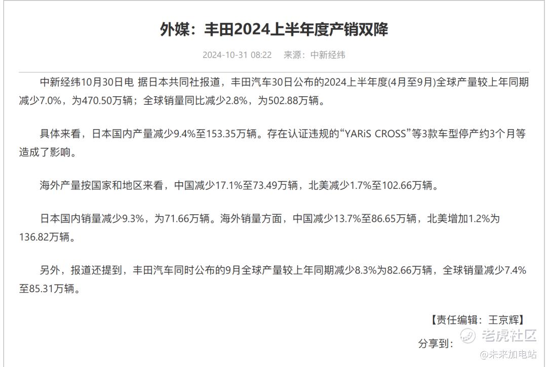 反正,丰田23年在华销量,同比下滑1.7%,24年上半年,丰田在中国的销量减少17.1%至73.49万辆,24年丰田的销量继续下滑,让出更多的市场份额给自主品牌,是已经注定发生的事情。