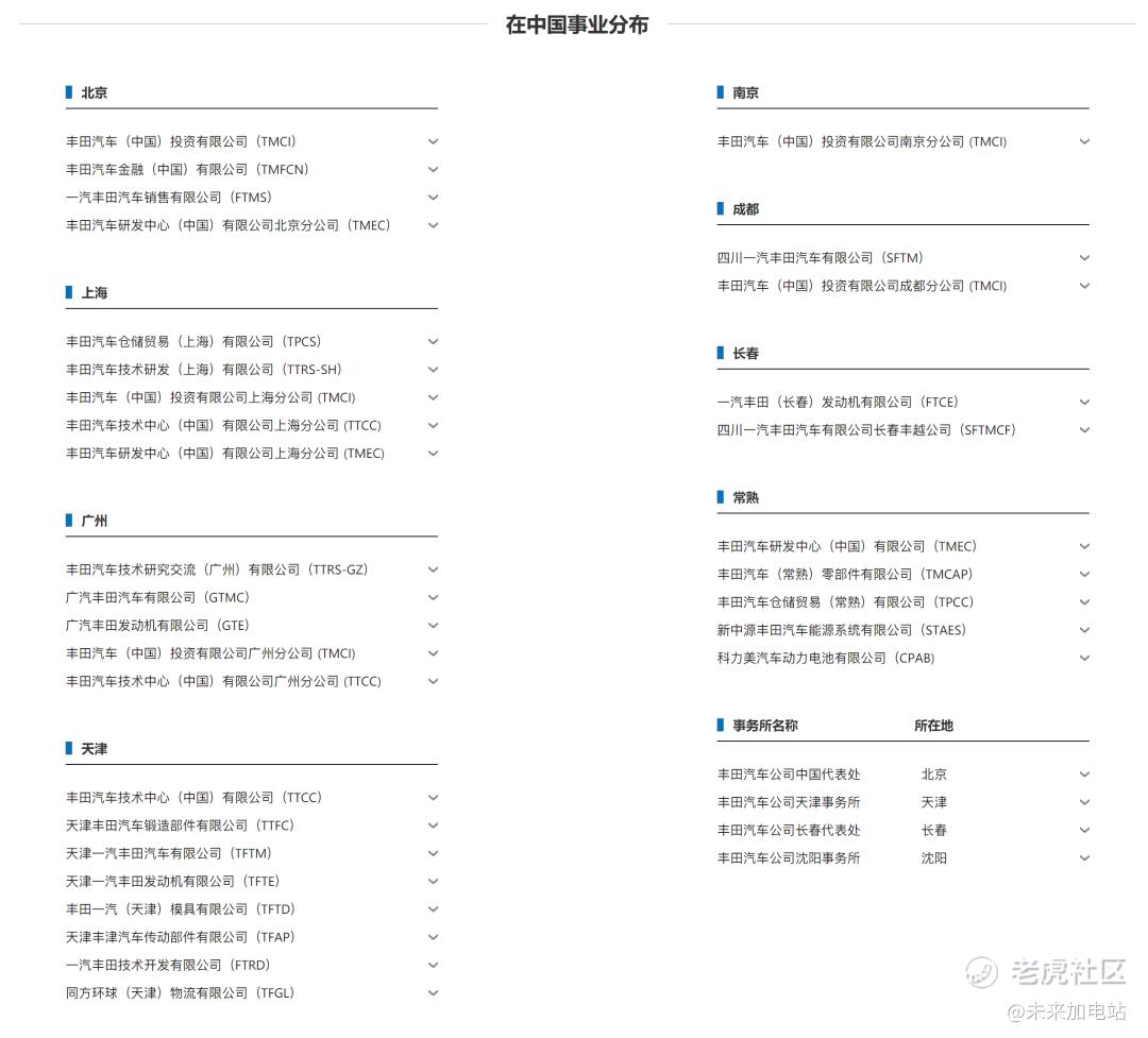 作为对比,以丰田为例,在官网上可以得知,一汽丰田和广汽丰田加起来,布局的地方有:北京、上海、广州、天津、南京、成都、长春、常熟、沈阳,基本上全是一线或者二线地区。