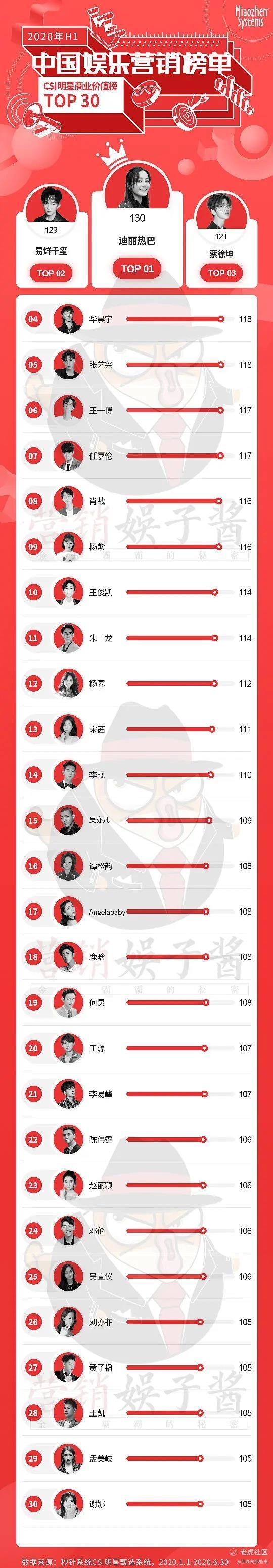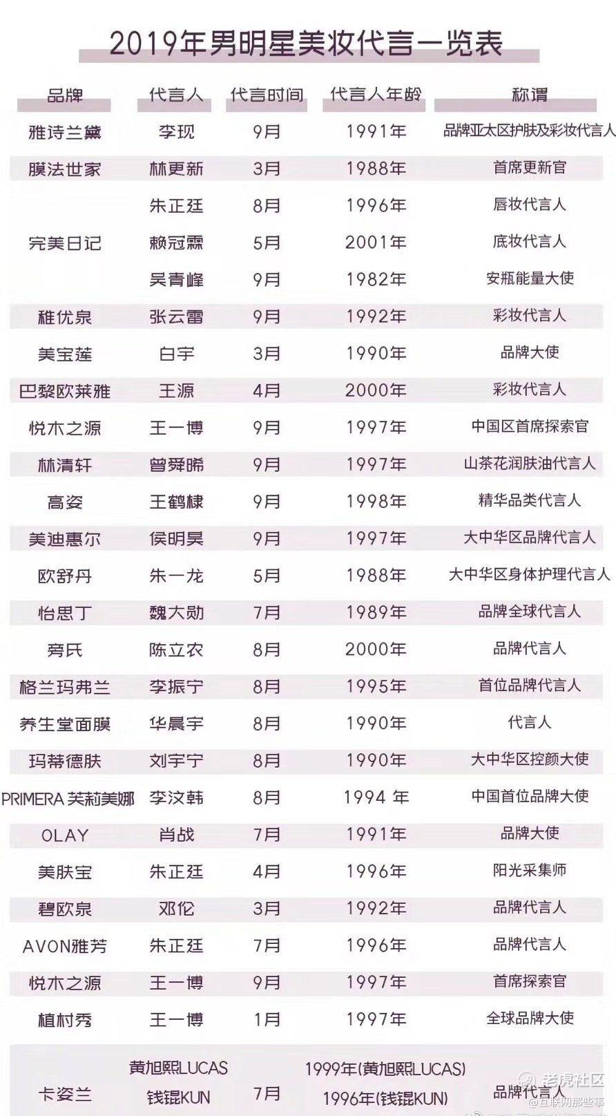 来自《娱乐营销2020白皮书显示》,王一博、任嘉伦、李现等同期新晋流量演员继续稳定保持在男星的第一梯队,蔡徐坤则成为又一站稳了的流量,几乎都有美妆个护的代言在手。