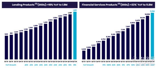 再次,SoFi的增长得到了SoFi平台上可用的贷款和金融服务产品数量增加的支持。贷款产品保持了19%的稳定年增长率,而金融服务则以33%的年增长率增长,比核心贷款产品增长速度快1.7倍。SoFi在金融服务产品上的强劲增长表明,该平台在客户货币化方面执行得很好。金融服务和Galileo——SoFi的技术平台——在9月份的季度中占收入份额的49%,比去年同期增长了10个百分点。