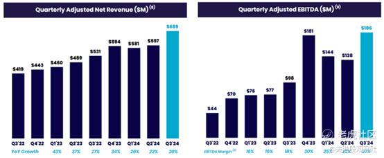 SoFi今年第三次提高了对调整后净收入和EBITDA的预期。根据最新的指导,金融科技公司目前预计今年将实现25.4亿至25.5亿美元的调整后净收入,并从中产生6.4亿至6.45亿美元的EBITDA(意味着全年EBITDA利润率为25%)。EBITDA指导意味着同比增长率为49%,这是由于平台扩张(强劲的客户获取)和不断添加到平台的新金融服务产品。