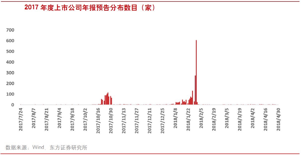 从 17 年的经验来看, 一共有 73%的上市公司披露了 17 年年报的业绩预告,同时有 55%的上市公司里披露了年报的业绩快报。