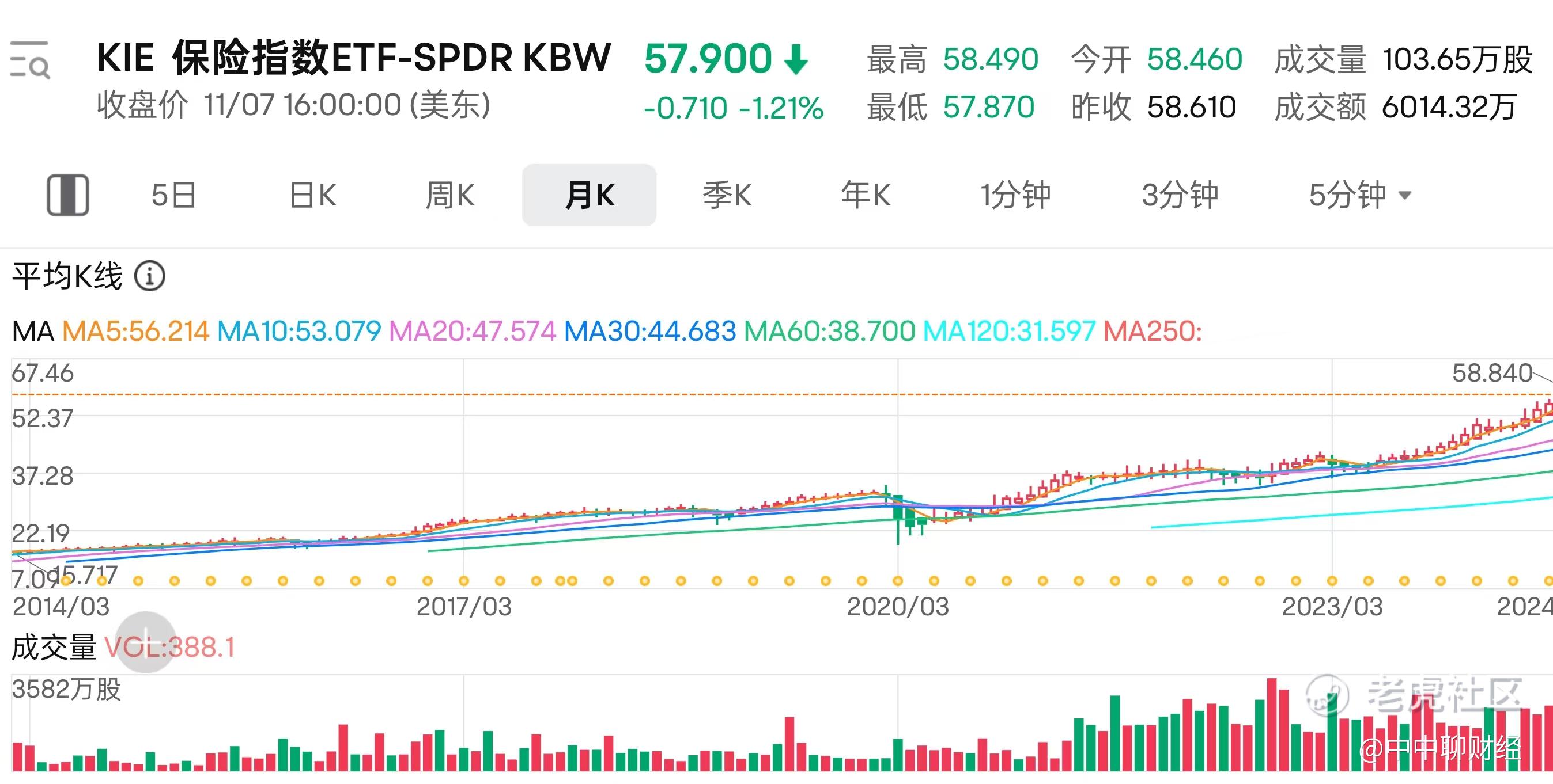 $保险指数ETF-SPDR KBW(KIE)$ 保险行业作为金融市场的重要组成部分,其表现往往与宏观经济环境密切相关。下面,我们用基本面与技术面进行详细分析该基金走势: